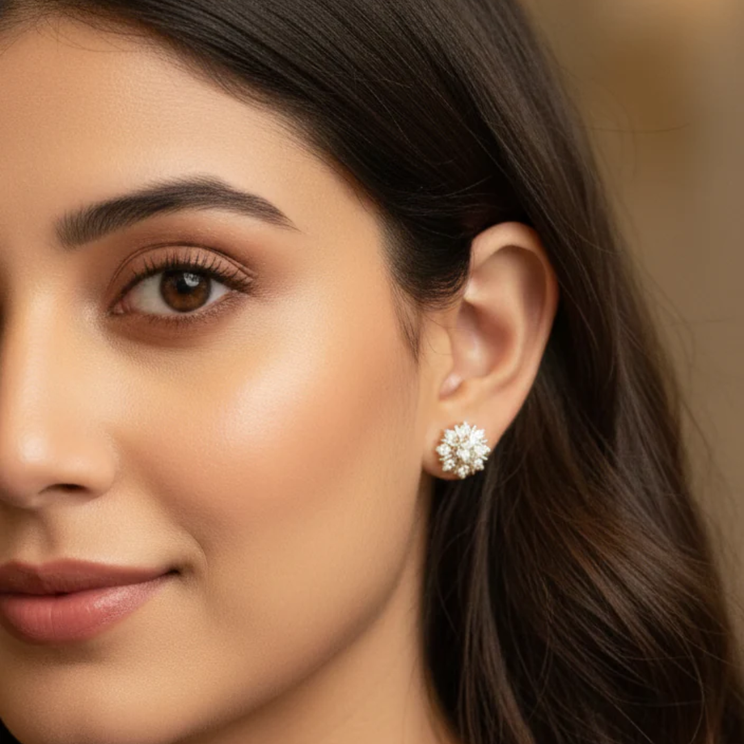 American Diamond Studds- showcase finely crafted stones that replicate the brilliance and clarity of real diamonds, delivering elegant sparkle at an affordable price. Engineered for both durability and comfort, these studs suit everyday use as well as special events. Their classic design brings a polished elegance to any ensemble, elevating your style with understated refinement.