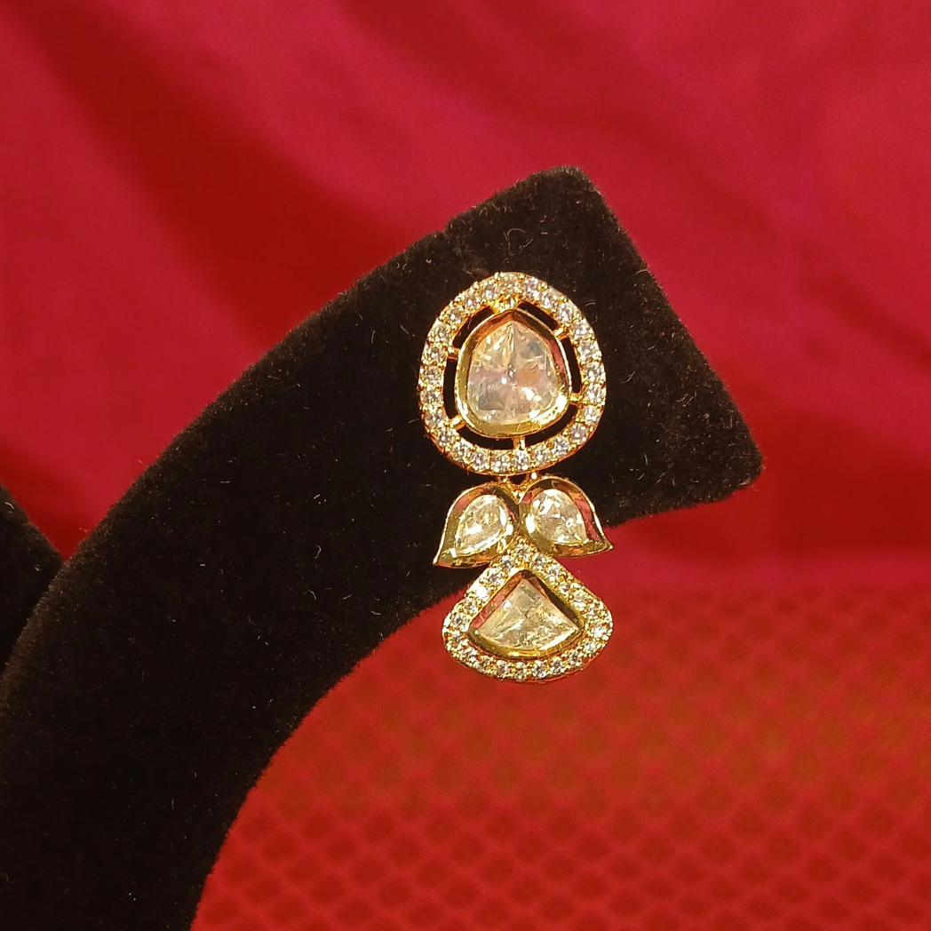 These classic Polki drop earrings are crafted for women who prefer elegant, timeless jewellery. Ideal for festive occasions, intimate weddings, and traditional gatherings.